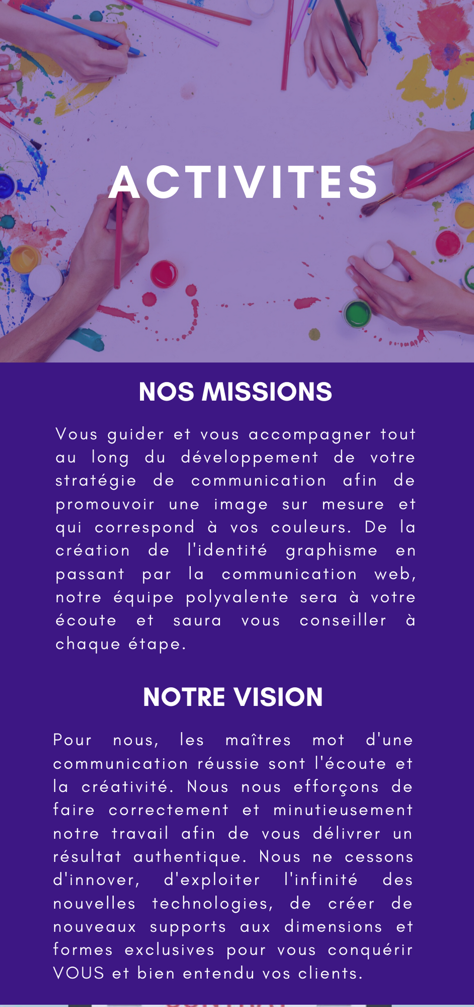 Pour nous faire connaître, nous avons réalisé un flyer permettant une bonne prospection et l'augmentation de la notoriété de l'agence sous la forme d'un nuancier